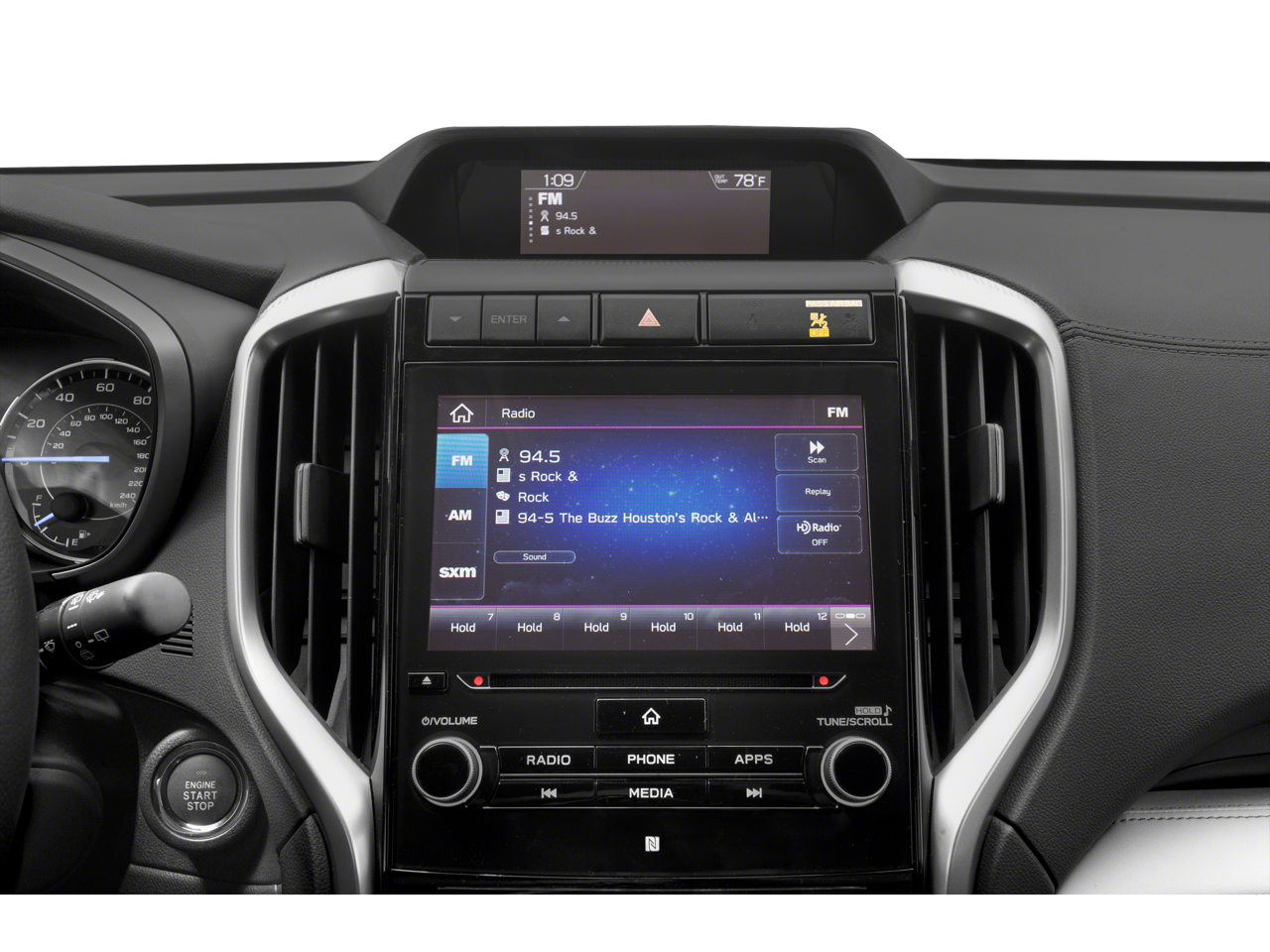 - Radio: Subaru STARLINK 8.0" Multimedia Plus System -inc: AM/FM stereo HD Radio w/single disc CD player, MP3/WMA/CRR/RW file capability, multi-touch gesture high resolution LCD display screen, voice activated controls, Bluetooth® audio streaming connectivity, Bluetooth® hands-free phone connectivity, Bluetooth® hands-free SMS text messaging connectivity (applicable w/compatible cell phone), Near Field Communication (NFC), iPod control capability, SiriusXM All Access radio (subscription required), SiriusXM Travel Link (subscription required), smartphone integration for Aha, Android Auto, CarPlay and Pandora, STARLINK cloud applications, steering wheel controls for audio and Bluetooth®, 6 speakers, 3.5mm auxiliary input jack and front, second and third row dual USB ports