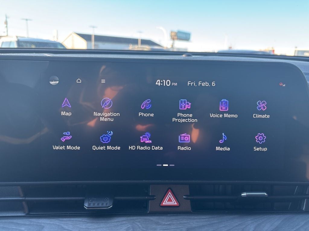 - Radio: AM/FM/HD Audio System -inc: 12.3" touchscreen w/navigation, 6 speakers, Apple Carplay and Android Auto, Kia Connect, voice recognition, WiFi, map OTA, satellite radio, steering wheel mounted audio controls and Bluetooth® phone and streaming audio